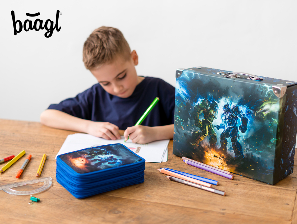 • Extra prostorné třípatrové penály na všechny psací potřeby.