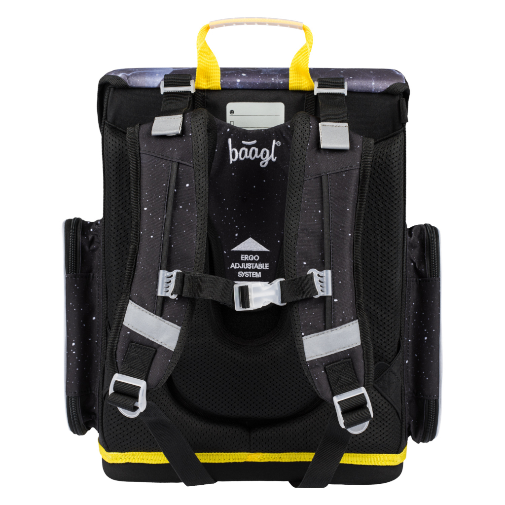 • Uvnitř aktovky je průhledná kapsa s rozvrhem a vnitřní organizér umožňující rovnoměrné rozložení hmotnosti.