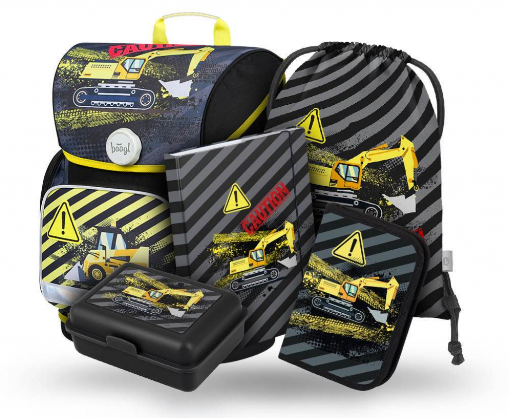 Školní set BAAGL 5 Ergo Bagr: aktovka, penál, sáček, desky, box