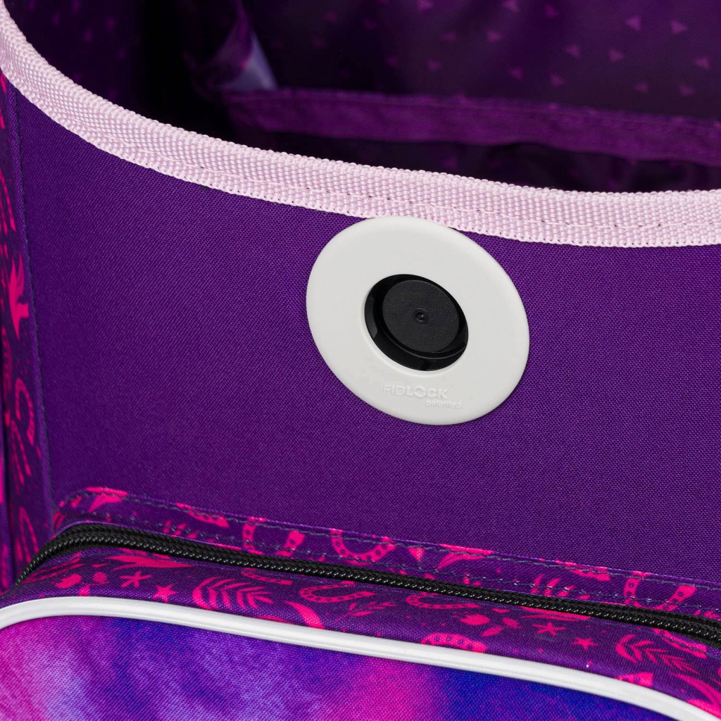 • Kvalitní magnetické zapínání Fidlock k otevření aktovky postačí pouhé otočení přezky a uzavření aktovky probíhá díky magnetickému systému automaticky, bez nutnosti manuálního zapínání.