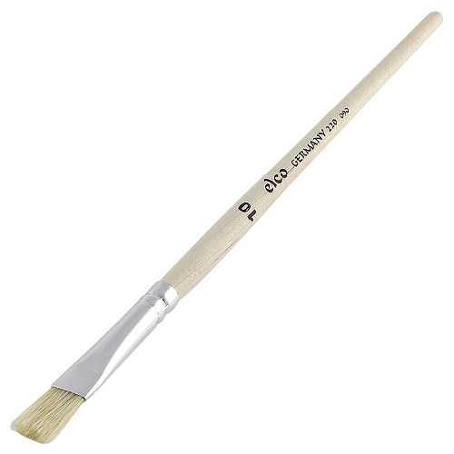 Plochý štětec s přírodními štětinami bílé barvy, bezešvé hliníkové kování, krátká dřevěná rukojeť. Velikost štětce - 10