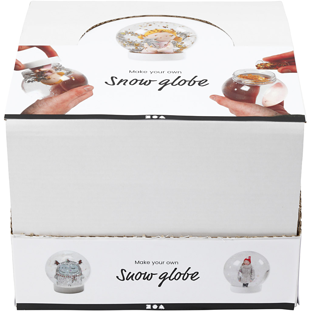 • Můžete si také vytvořit drobné figurky nebo dekorace, které vydrží ponoření do vody (výrobky z pryskyřice, laminované obrázky, figurky Fimo a Wepam atd.)  Dekoraci přilepte na dno víčka lepidlem, které odolává vodě (deální je tavná lepicí pistole) Poté kouli naplňte vodou atd.