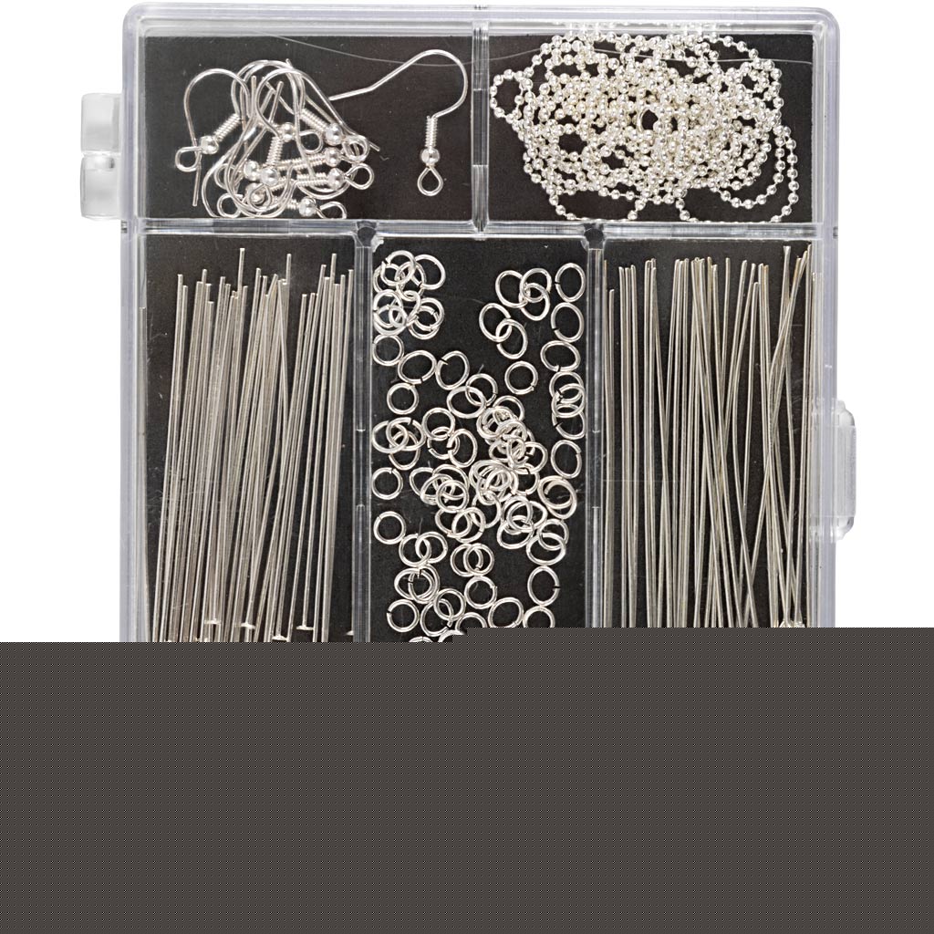 Sada obsahuje vše, co potřebujete pro výrobu různých typů šperků, od náušnic až po náhrdelníky - afroháčky, puzetové náušnice, náušnice s obroučkami, puzetky s očkem i bez očka, o-kroužky a kuličkový řetízek. Záleží jen na vás, jaké kombinace vytvoříte.