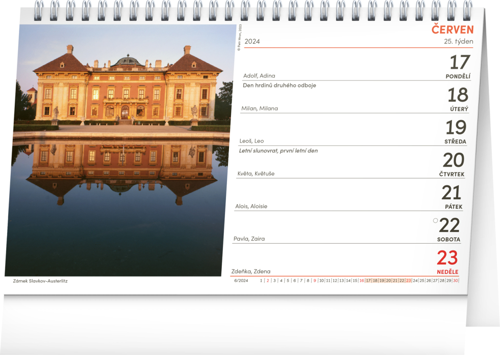 Vydejte se na výlet po kouzelných hradech a zámcích Čech, Moravy i Slezska s naším stolním kalendářem s barevnými fotografiemi bratrů Hronových. Součástí kalendáře je také české týdenní kalendárium s prostorem pro vaše poznámky.