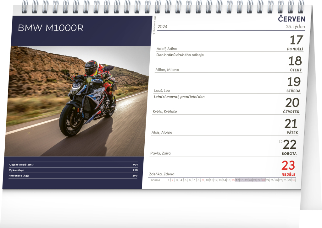 Stolní kalendář Motorky 2024, 23,1 × 14,5 cm - obrázek Stolní kalendář Motorky 2024, 23,1 × 14,5 cm - obrázek