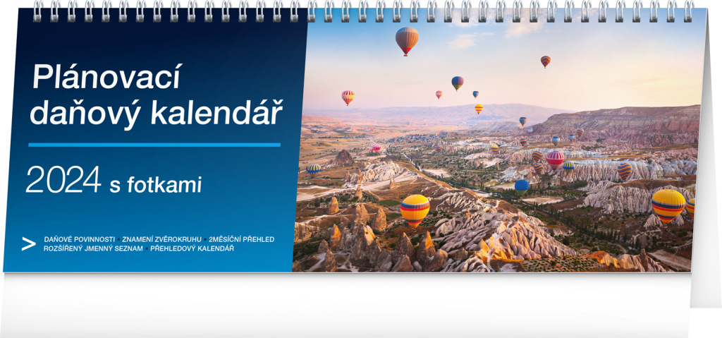 Termíny daňových povinností ve stolním kalendáři doplněném o 53 snímků zachycujících krásy ze všech koutů světa. Ideální kombinace kalendáře, která snoubí povinnosti a odreagování. České týdenní kalendárium s prostorem pro vaše poznámky obsahuje jména, svátky a významné dny.
