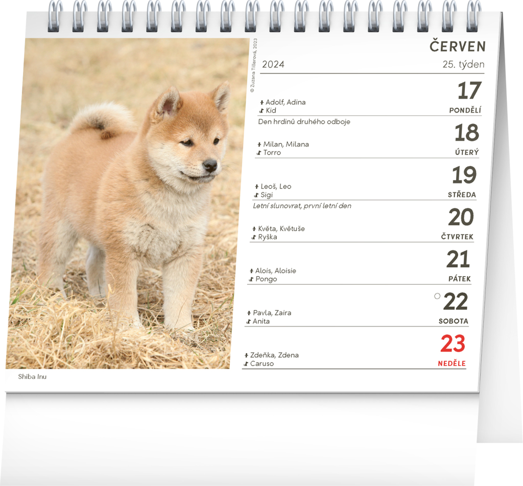 Oslavte svátek spolu se svým psím parťákem – v tomto praktickém stolním kalendáři najdete jména psů na každý den. Kalendář zdobí hezké fotografie od Zuzany Tillerové a nechybí ani prostor na poznámky.