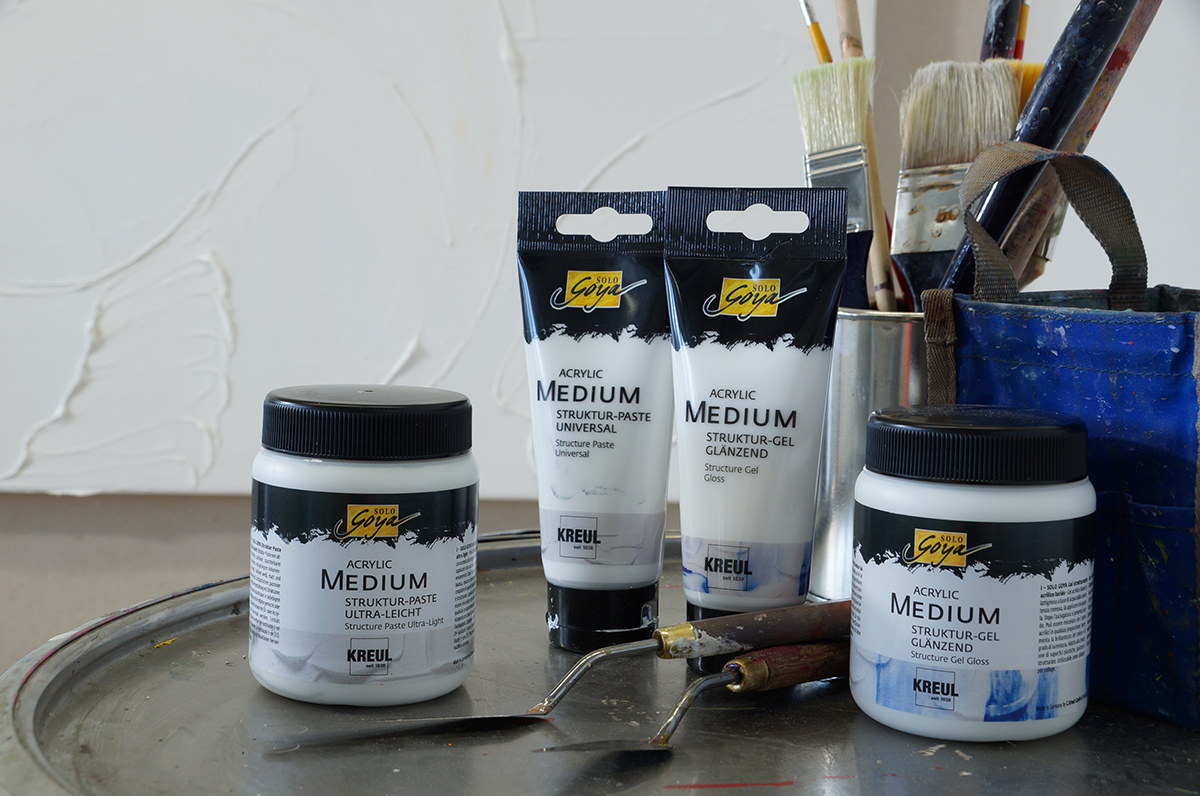Při setkání akrylových barev, strukturovacích past a gelů vzniká na plátně nejen optický, ale i hmatový svět zážitků. Strukturovací pasty jsou vhodné pro plastické, pastovité ztvárnění povrchu se strukturami, lze je použít jako základní nátěr, k dosažení různých textur pozadí, jsou vhodné pro různé trojrozměrné efekty a jako lepidlo pro koláže.