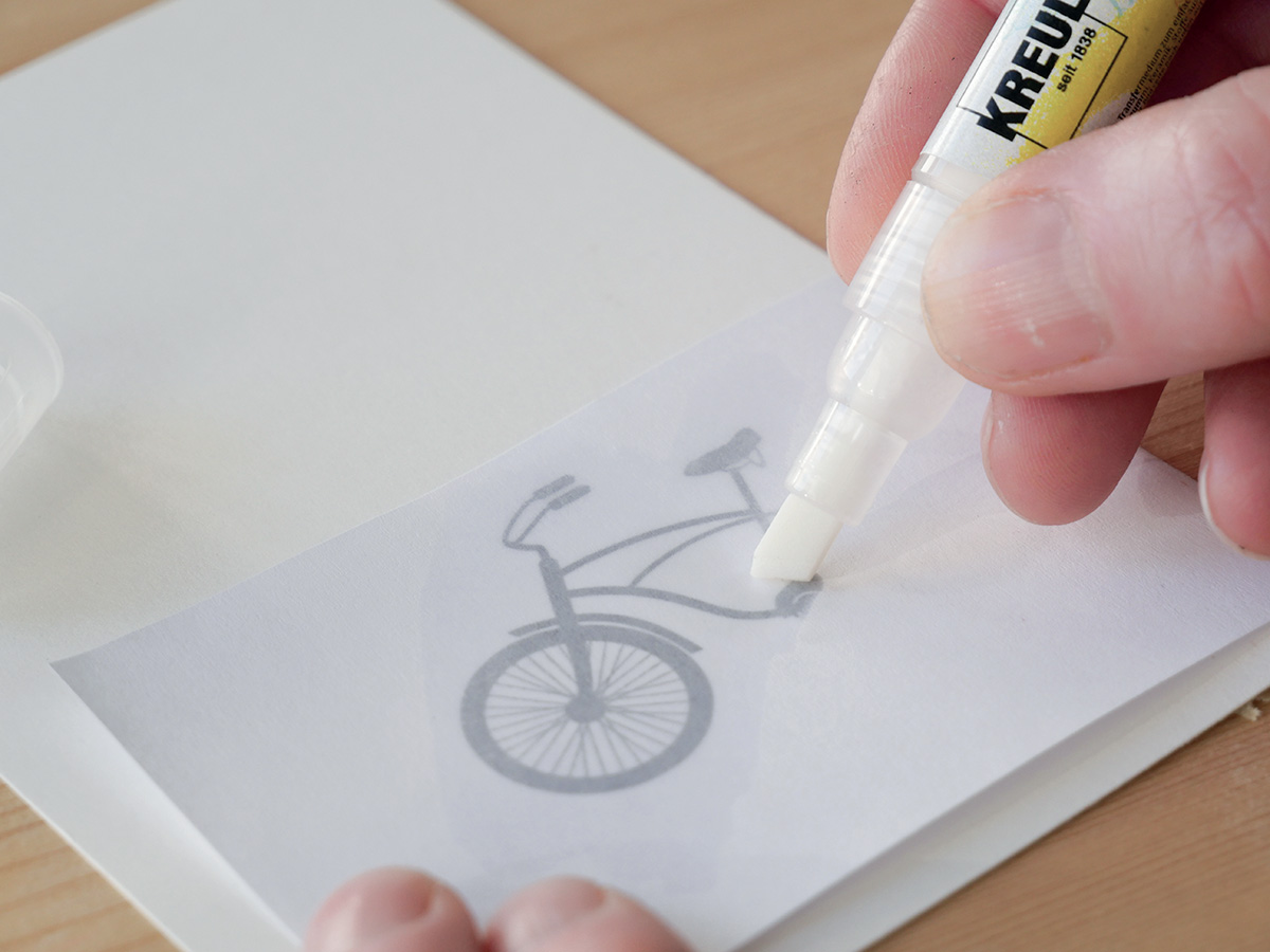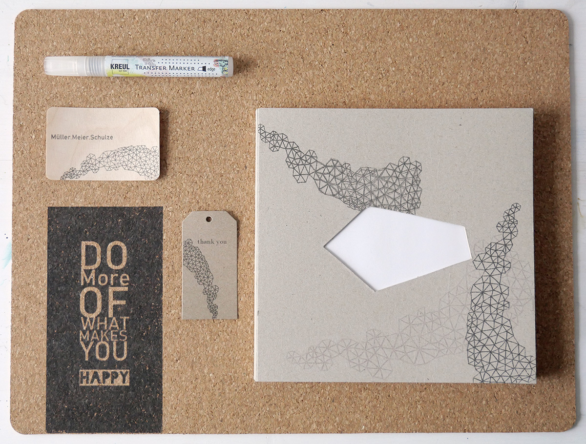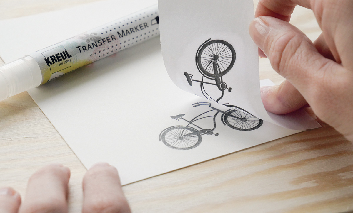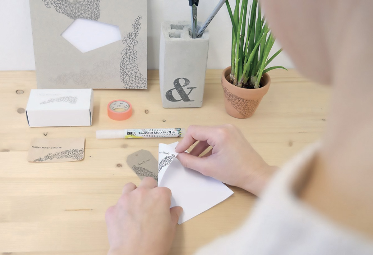 Grafické návrhy na pohlednicích , dárkových štítcích nebo lepenkách, typografických plakátech nebo láskyplných ilustracích: tvůrci přenášejí tištěné motivy nebo nápisy rychle a snadno pomocí značky KREUL Transfer Marker.