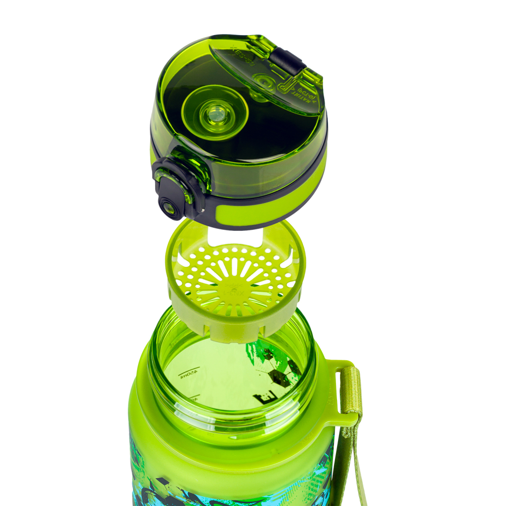 Uzamykatelné víčko nepropustí ani kapku nápoje a zaručuje jednoduché a intuitivní používání. Součástí láhve je i sítko, díky kterému můžete láhev použít i na limonády s ovocem nebo čaj (materiál je vhodný i pro horké nápoje). K láhvi je připevněné také poutko pro pohodlné nošení v ruce.