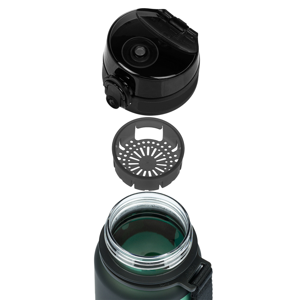 Uzamykatelné víčko nepropustí ani kapku nápoje a zaručuje jednoduché a intuitivní používání. Součástí láhve je i sítko, díky kterému můžete láhev použít i na limonády s ovocem nebo čaj (materiál je vhodný i pro horké nápoje). K láhvi je připevněné také poutko pro pohodlné nošení v ruce.