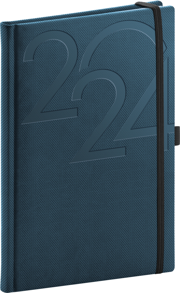 Elegantní modrý týdenní diář Ajax 2024 v rozměru A5. Povrch s jemnou strukturou připomínající výbrus diamantu je ideální pro všechny typy ražeb. Diář má zakulacené rohy, poutko na tužku a elastickou gumičku, sloužící k pevnému uzavření.