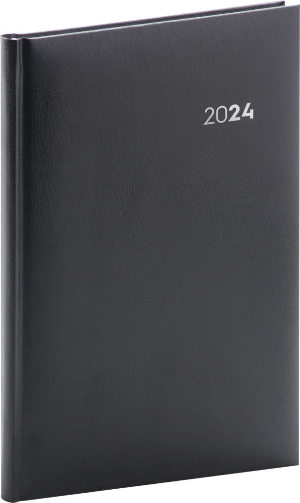Plánovací týdenní diář Balacron 2024 v černém provedení, doplněný o stříbrný letopočet. Povrch diáře si získal oblibu díky kvalitnímu svrchnímu materiálu, který je extrémně odolný vůči vnějšímu poškození. Týdenní rozvrh s česko-slovenským kalendáriem a doplňkovou angličtinou, němčinou, maďarštinou a ruštinou.