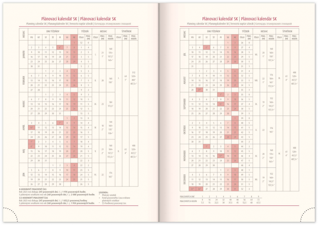 • pracovní plánovací kalendář
