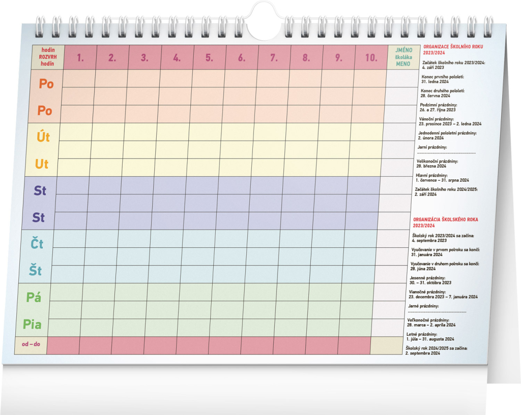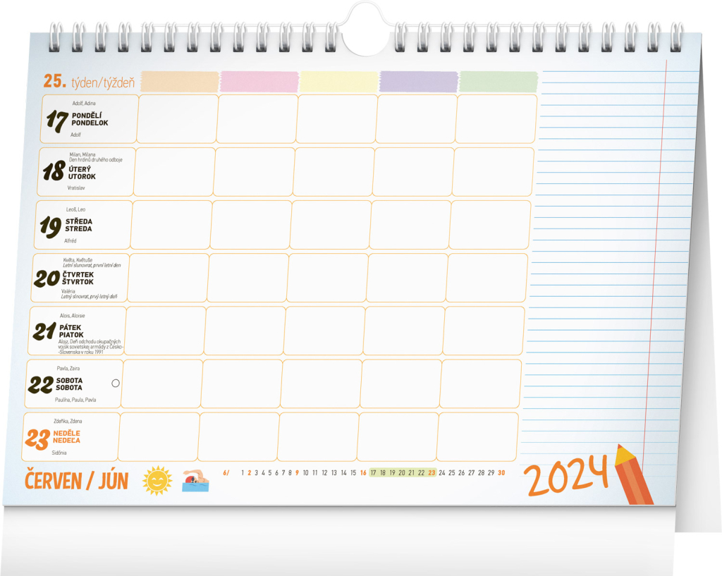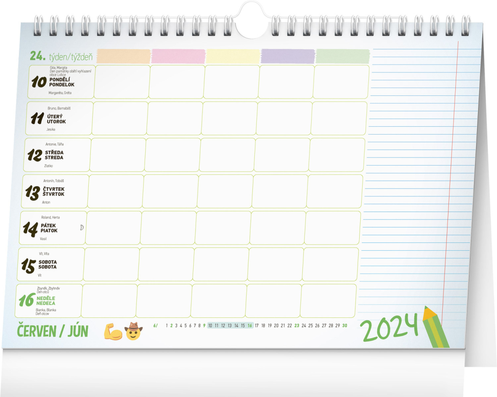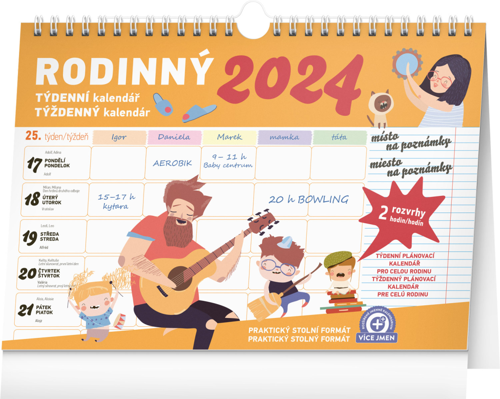 Pro zvládnutí rodinného chaosu je tady týdenní rodinný kalendář, ve kterém si čas naplánuje až pětičlenná rodina. Kalendář můžete použít jako stolní nebo ho pomocí háčku zavěsit na zeď. Obsahuje české a slovenské kalendárium.