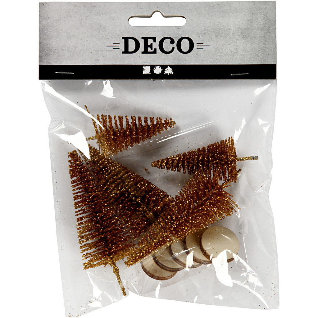 Malé stromečky z nylonových štětin a krouceného drátu. Každý stromeček je dodáván s malým dřevěným stojánkem pro montáž. Používá se k výrobě menších vánočních krajinek na okenní parapety apod.