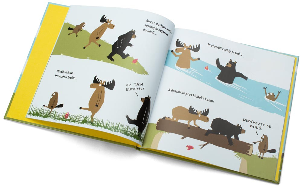 V této veselé moderní bajce plné napínavého dobrodružství se seznámíte s roztomilými postavičkami a ponaučením, jak je důležité spojit své schopnosti a navzájem spolupracovat. Příběh je postaven na týmové práci a přátelství. Napsal a ilustroval ho Nicholas Oldland. Jeho ilustrace jsou jednoduché, vtipné a originální. V mimice hlavních hrdinů zachycuje humor a reakce na prožívané situace. Humorný příběh doprovází i malý červený ptáček, který provází tři kamarády na cestách za dobrodružstvím!