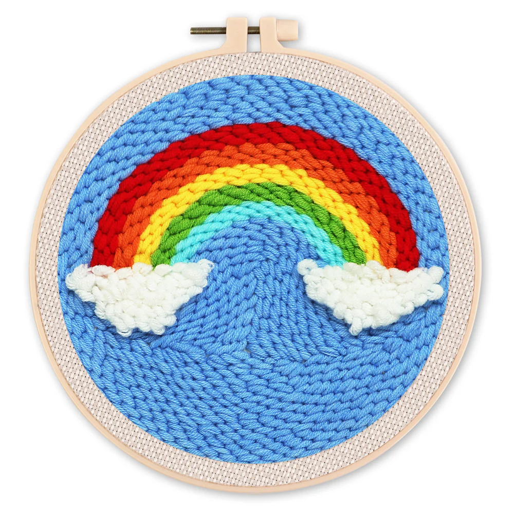 Vyšívání dutou jehlou sada - DUHA 20x20 cm kulatý rám