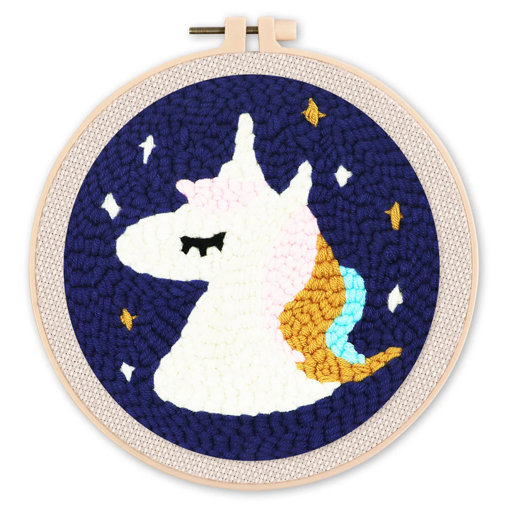Vyšívání dutou jehlou sada - JEDNOROŽEC 20x20 cm kulatý rám