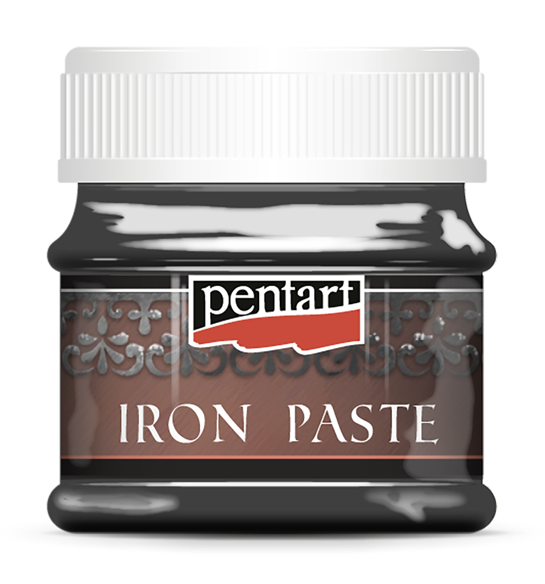 S pastou obsahující železné minerály různé zrnitosti, které můžete najít v přírodě, napodobíte kovové a rezavé železné povrchy. Pastu můžete na zdobený povrch nanést štětcem nebo špachtlí. Minerální pastou můžete tvořit úžasné kovové povrchy.