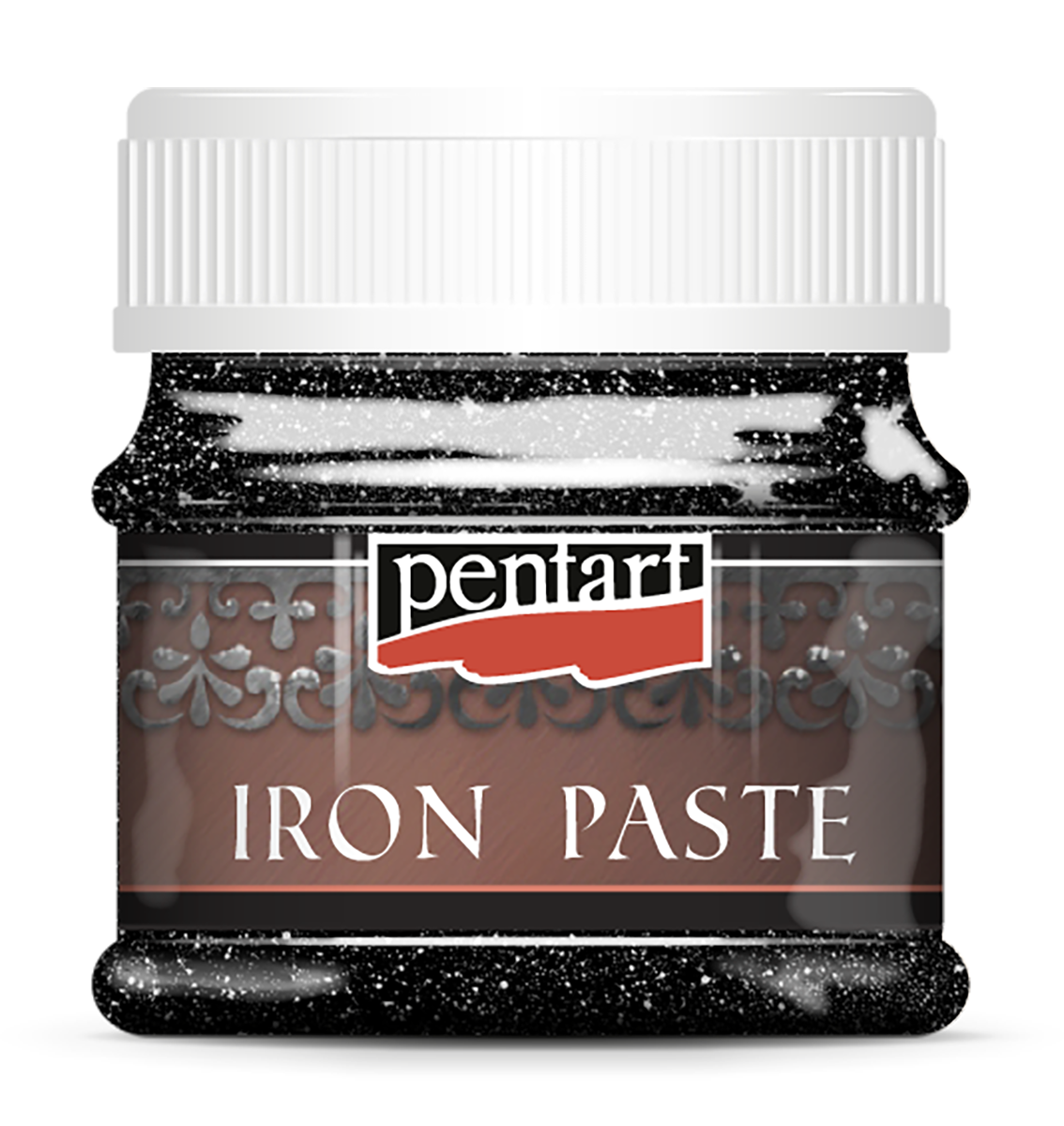 S pastou obsahující železné minerály různé zrnitosti, které můžete najít v přírodě, napodobíte kovové a rezavé železné povrchy. Pastu můžete na zdobený povrch nanést štětcem nebo špachtlí. Minerální pastou můžete tvořit úžasné kovové povrchy.